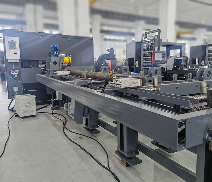The high-speed metal circular saw machine is mainly composed of a machine bed, a power head, a feeding system, an automatic feeding device, a clamping device, a material dividing device, a hydraulic system, an electrical system, a spray cooling system, an automatic lubrication system, a chain plate chip conveyor, a cutting fluid cooling device, a saw blade cleaning device, etc. |