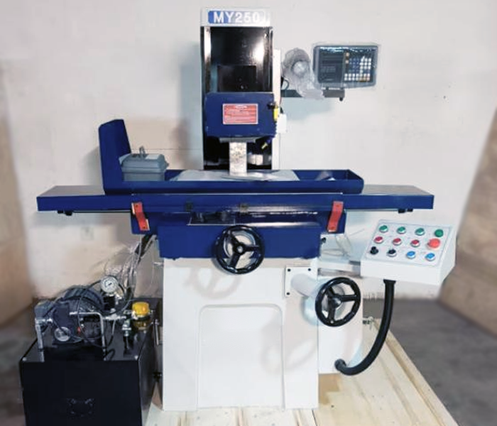 The MY250 is primarily a hydraulic or manual-hydraulic combined surface grinder, mainly used for precision grinding of small to medium-sized workpieces. It is commonly used for machining mechanical parts and mold components. The worktable size is 500mm × 250mm, and the maximum workpiece size that can be machined is mostly 700mm × 280mm × 450mm. The maximum load capacity of the worktable is between 200 and 250kg. It offers excellent machining accuracy, achieving a workpiece surface roughness of Ra < 0.4μm. | ||||