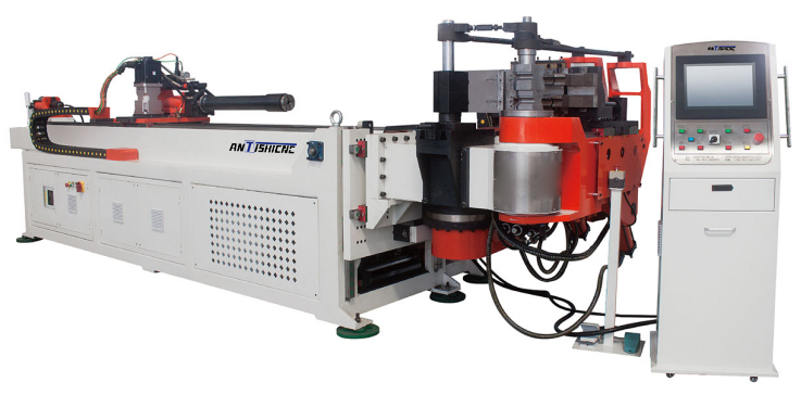 The ANTS CNC2503RES pipe bending machine is a hybrid electric servo pipe bending machine. It features three electric servo drives: Y (feeding), B (pipe rotation), and C (bending).