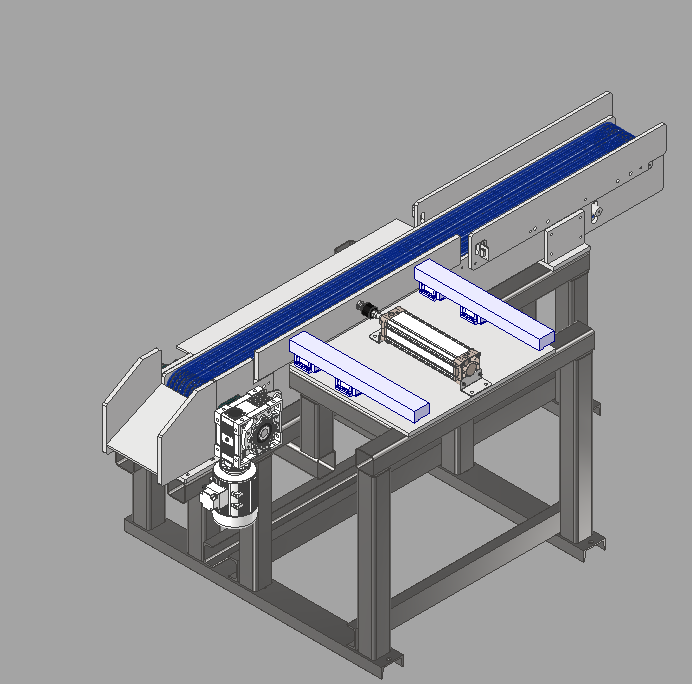 The discharging conveyor mechanism consists of a reduction motor, a conveyor belt, a feeding wheel, a frame and a material separation mechanism. The material separation power comes from the cylinder. The cut material moves outward under the drive of the conveyor belt. When the material head reaches the fixed position, it is detected by the photoelectric switch and can be pushed out to the side or not. The material will continue to move outward until it leaves the conveyor.