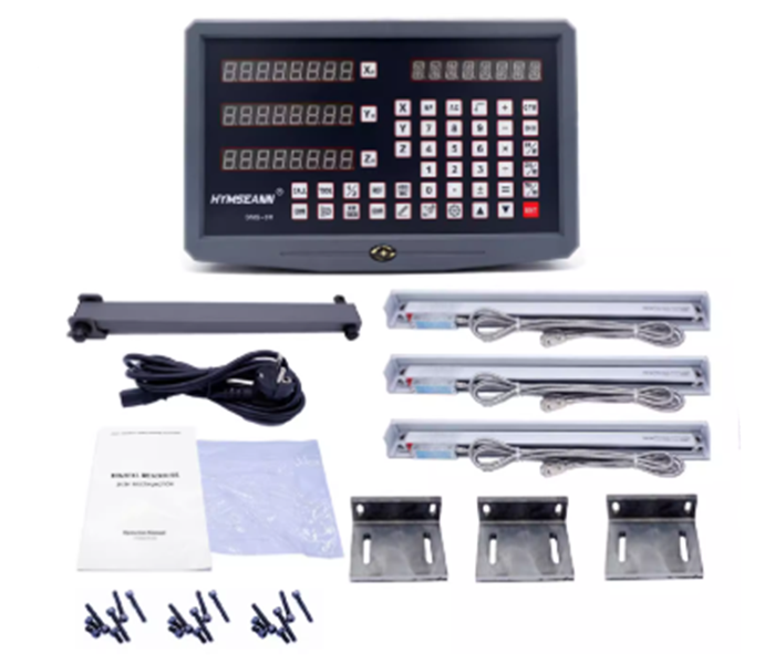 The 3-axis Digital Readout (DRO) system is equipped with high-precision linear scales and a digital display unit, which can real-time monitor the displacement coordinates of the X, Y, and Z axes to achieve precise positioning and dimensional control. The DRO device features core functions such as absolute/incremental coordinate switching, metric/imperial unit conversion, preset zero point, and radius compensation. It supports data storage and program recall, significantly improving the efficiency and repeat positioning accuracy of complex contour machining.