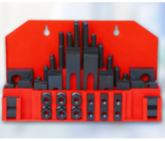 The combination clamp is a modular fixture system specifically designed for clamping workpieces on milling machines. It consists of high-strength alloy clamps, T-bolts, stepped pads, and adjusting nuts, enabling quick positioning and rigid fixing of workpieces. This set undergoes quenching and hardening treatment, featuring strong deformation resistance with a maximum bearing pressure of up to 5 tons. When used in conjunction with the T-slots on the turret milling machine table, it can flexibly form various clamping schemes. The stepped pads support multi-level height adjustment from 5mm to 50mm, meeting the clamping needs of workpieces with different thicknesses. The locking nuts adopt an anti-loosening design to ensure no displacement during machining. It is suitable for milling, drilling, and other processes of irregular parts and large-sized workpieces, significantly improving clamping efficiency and machining stability, and is an essential auxiliary tool for processing complex parts.