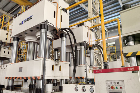 2.1250tons of three-beam four-column hydraulic press cylinder tonnage is achieved by a piston cylinder, the cylinder body is high-quality forged steel, piston rod surface by intermediate frequency quenching treatment, high hardness, long service life. The main seals of the cylinder adopt high-quality seals to ensure reliable sealing.